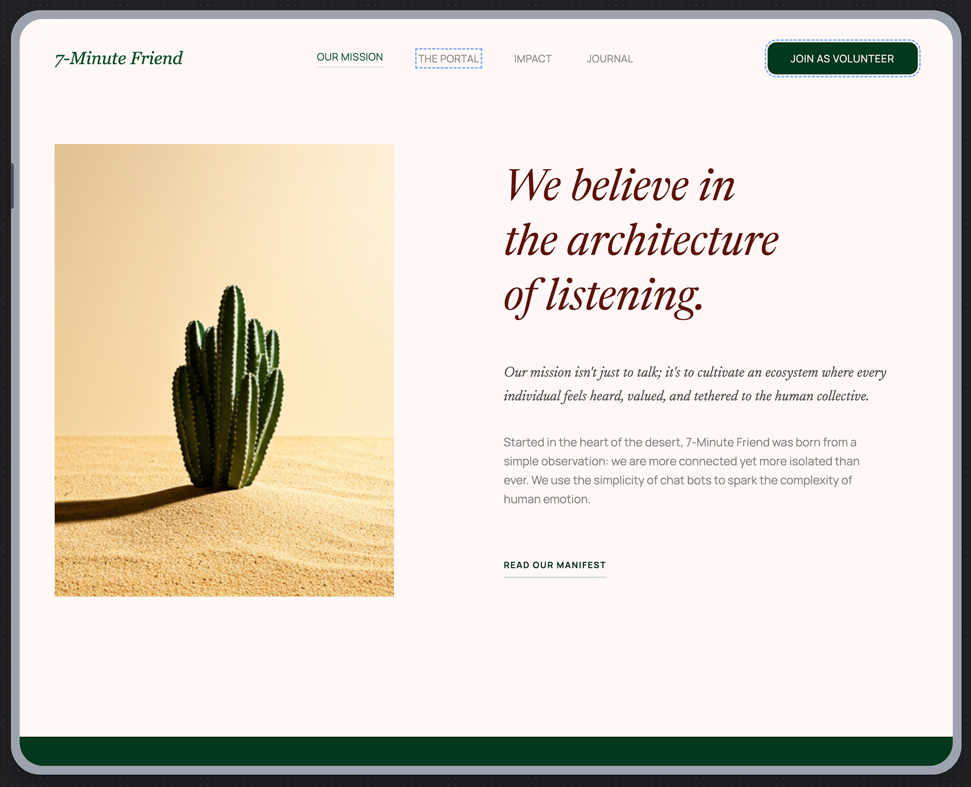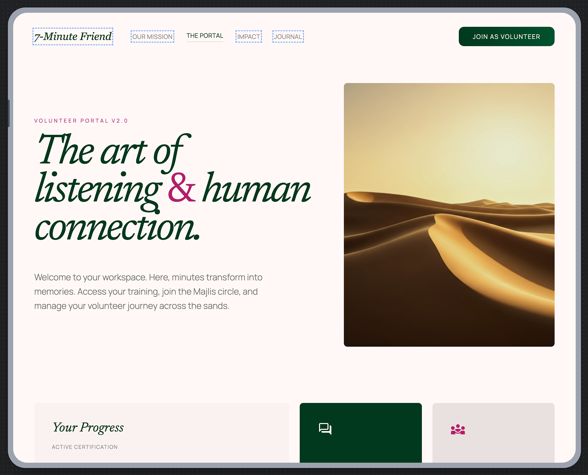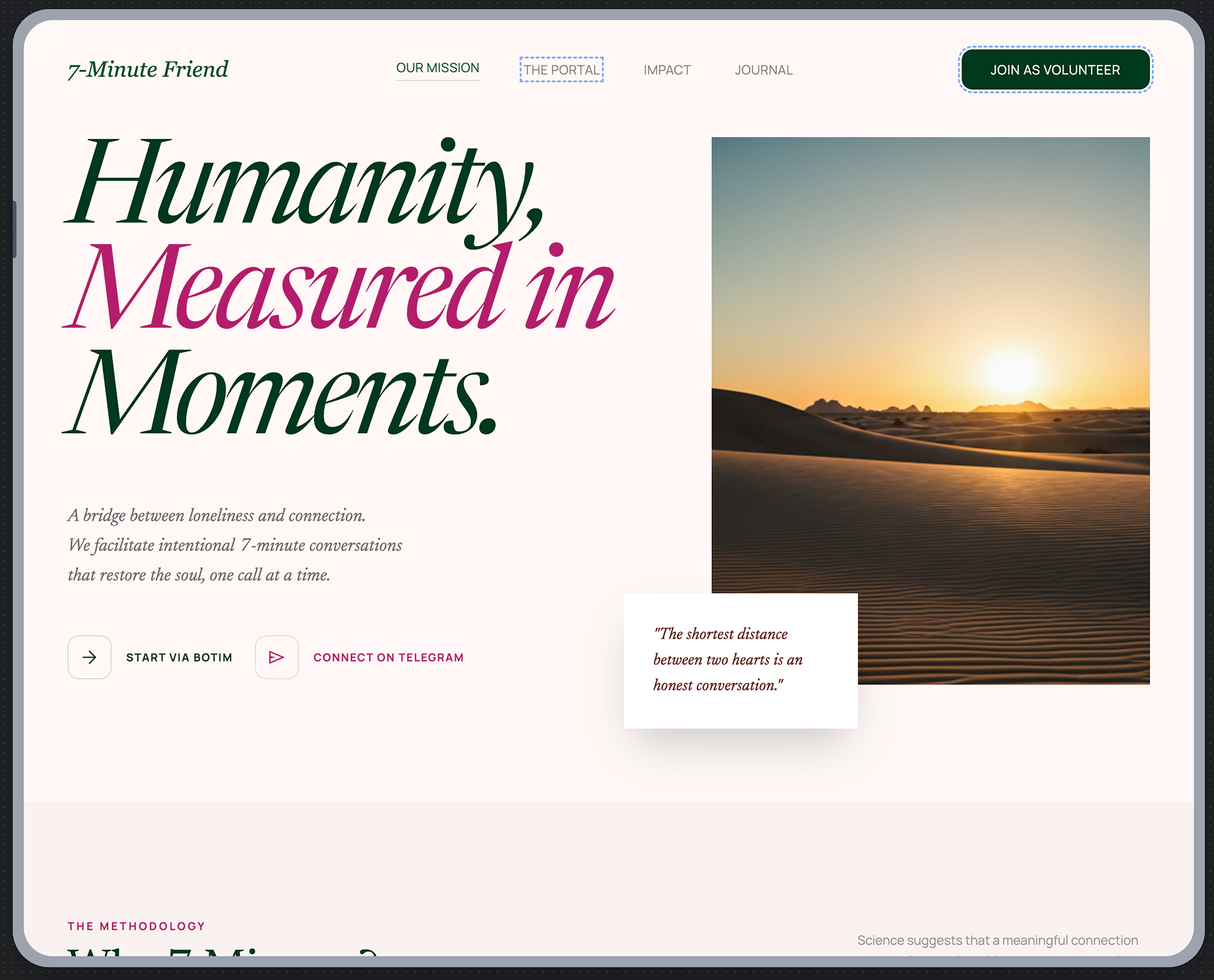 Built with #STITCH (Google Labs). This non-medical, volunteer platform facilitates quick, meaningful connections for mental well-being support.
