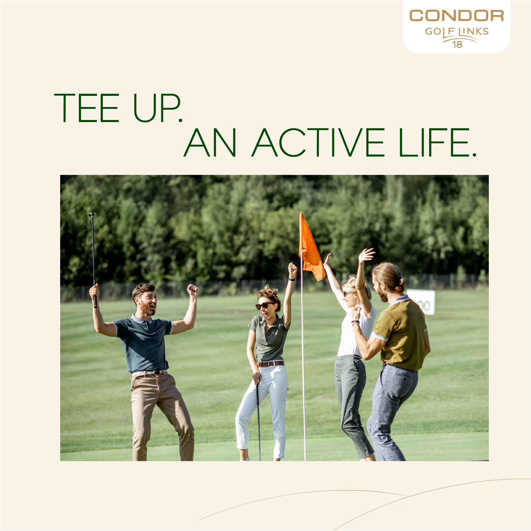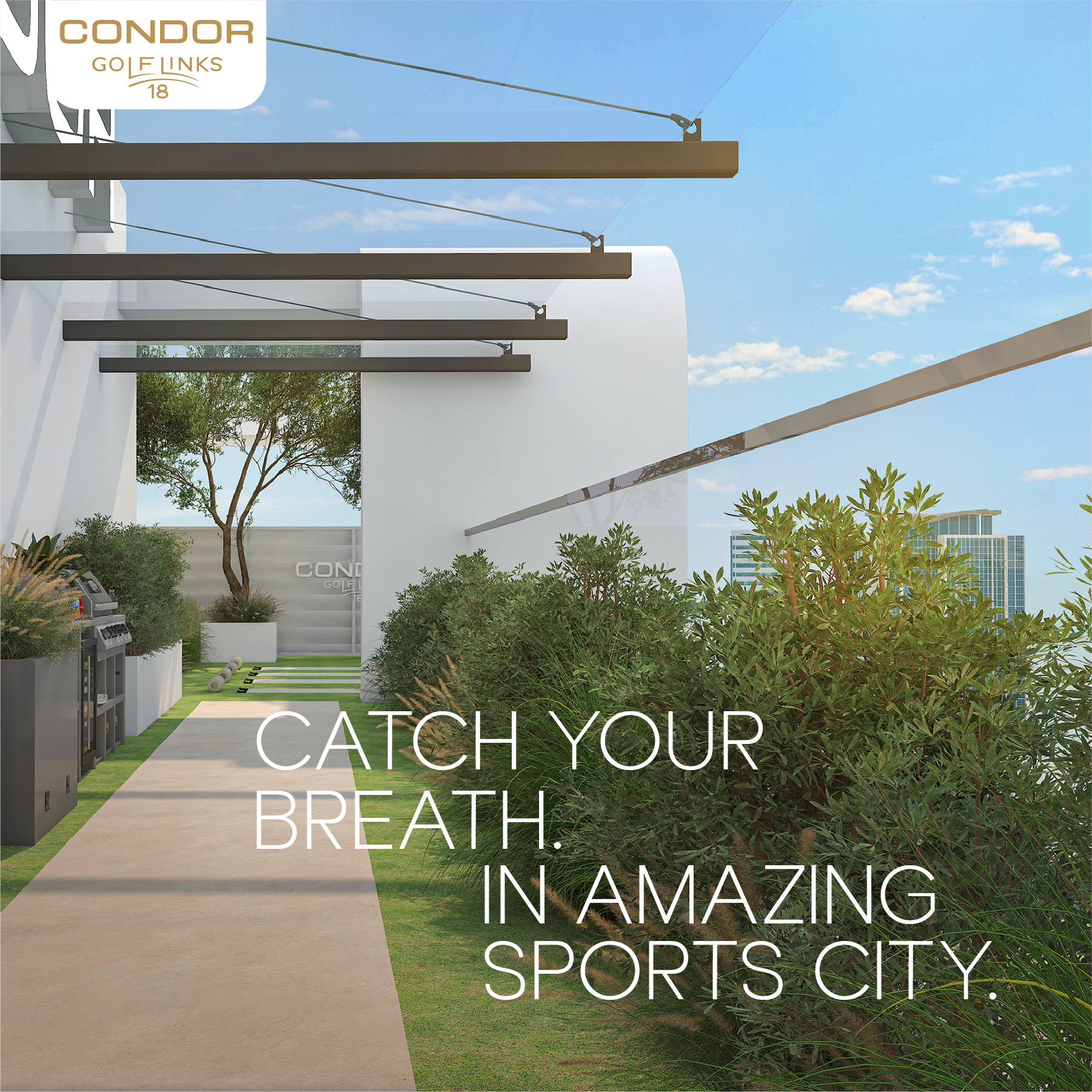 Condor Golf Links 18 is a lifestyle-driven residential destination in Dubai Sports City, overlooking the prestigious ELS Club Golf Course. The brand identity is crafted to appeal to golf enthusiasts and those who embrace an active, wellness-focused lifestyle.