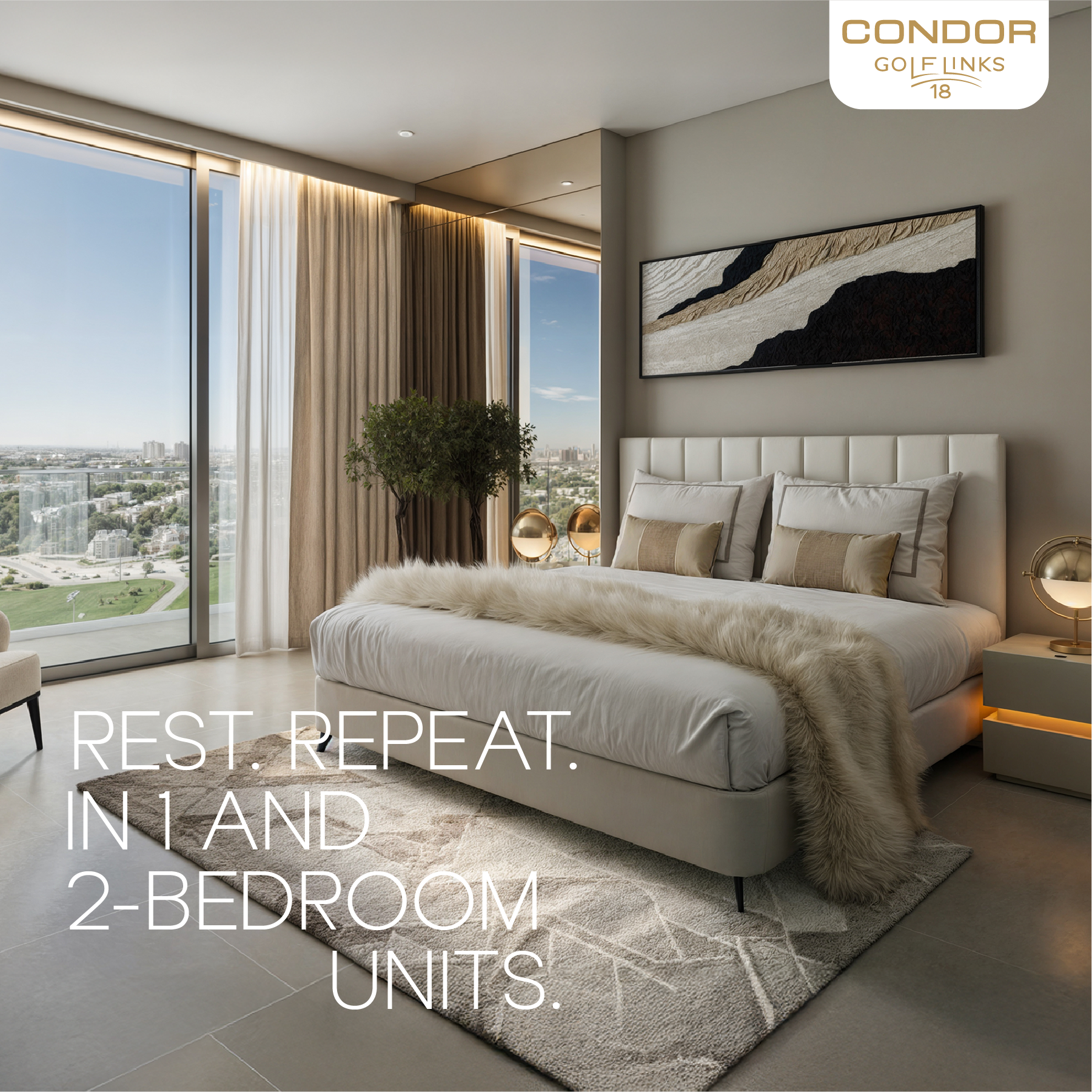 Every design element—from typography to iconography—reflects the spirit of golf and the values of health, energy, and vitality. Combining sleek architecture, modern interiors, and vibrant community living, Condor Golf Links 18 celebrates motion, ambition, and balance—a place where every day begins with purpose and life is truly well-played.