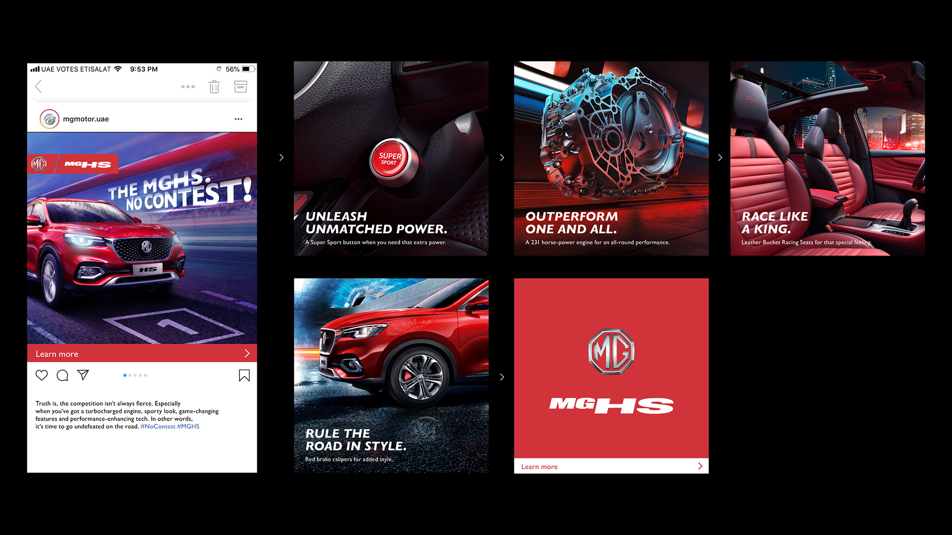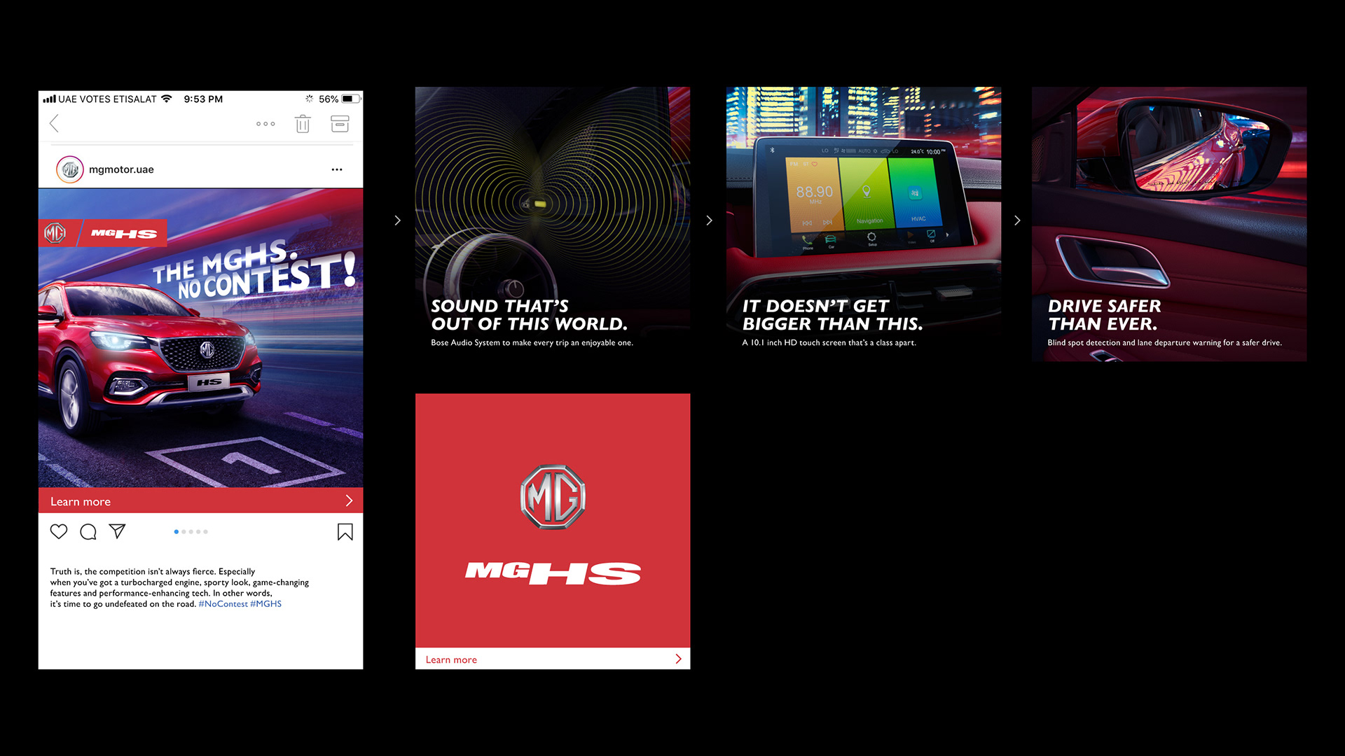 A collection of product launch campaigns for MG Motors.