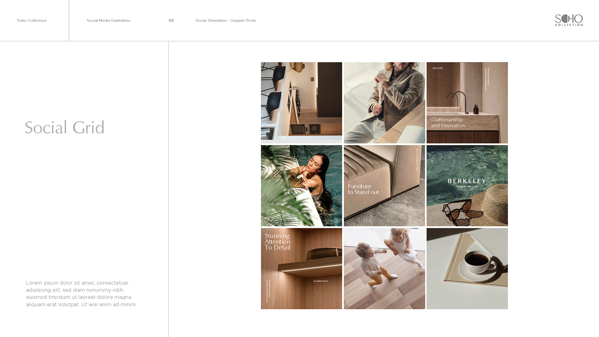 The result is a cohesive, modern identity that brings life to design through sophisticated storytelling, elevated photography direction, and a timeless social-first presence—capturing the Soho philosophy: Beyond Imagination.